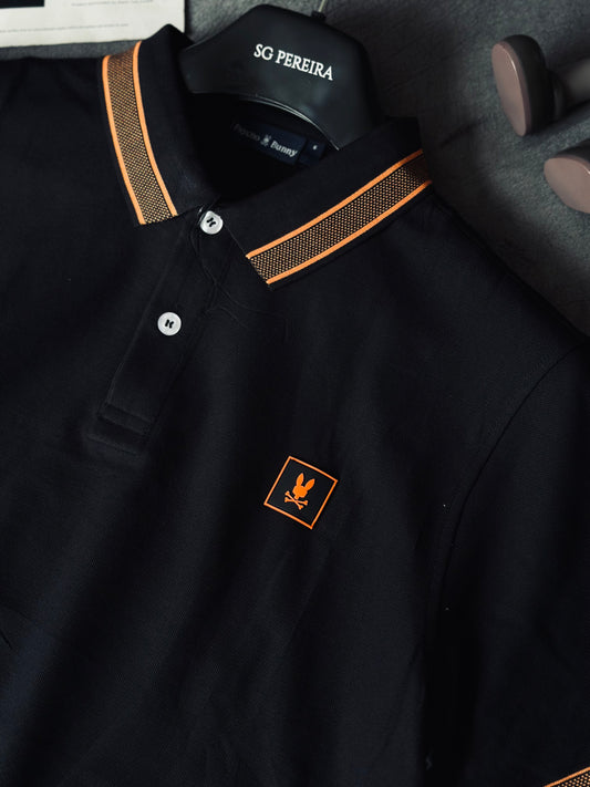 CAMISETA POLO PSY NEGRA CUELLO NARANJA