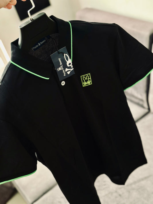 CAMISETA POLO PSY NEGRA CUELLO DETALLE VERDE