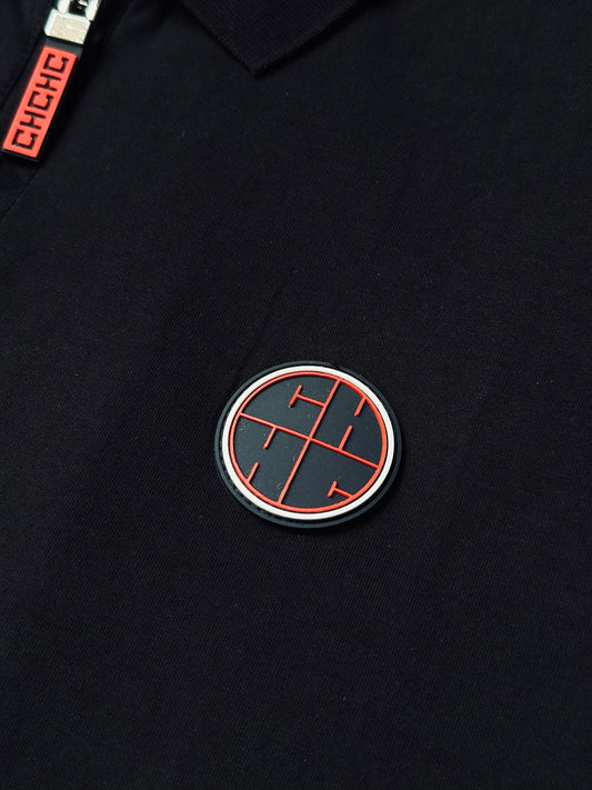 CAMISETA POLO CAR NEGRA CREMALLERA ENGOMADO