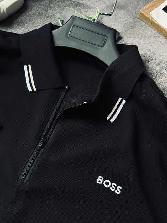 CAMISETA POLO HUG NEGRA CREMALLERA BOSS BLANCO