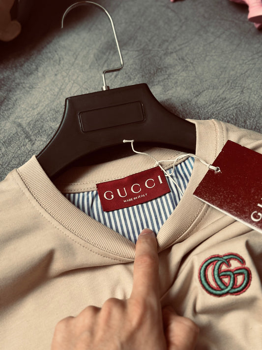 CAMISETA OVERSIZE TC GUC BEIGE BORDADO VERDE