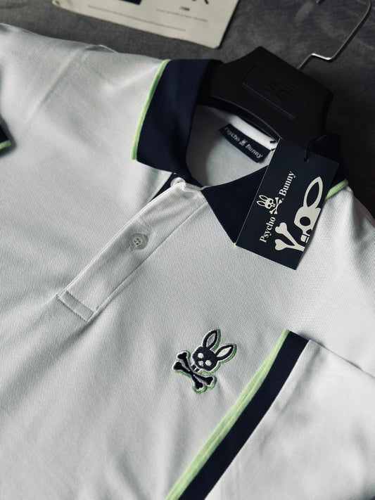 CAMISETA POLO PSY BLANCA CUELLO AZUL