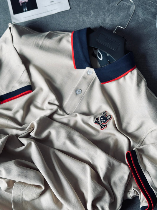 CAMISETA POLO PSY CAQUI BORDE ROJO