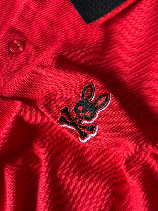 CAMISETA POLO PSY ROJA CUELLO NEGRO