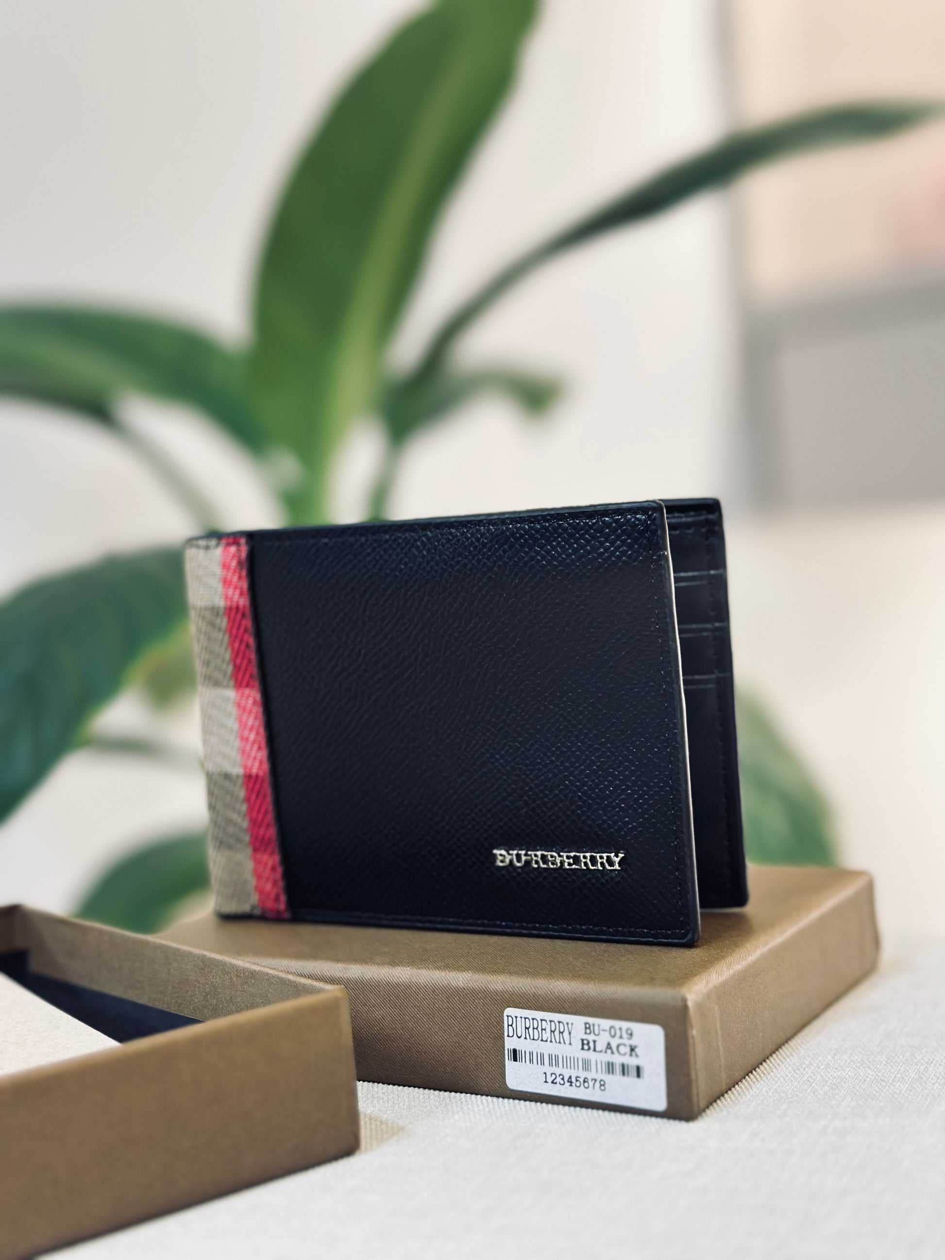 BILLETERA BUR NEGRA TEJIDO CAFÉ/ROJO COSTADO