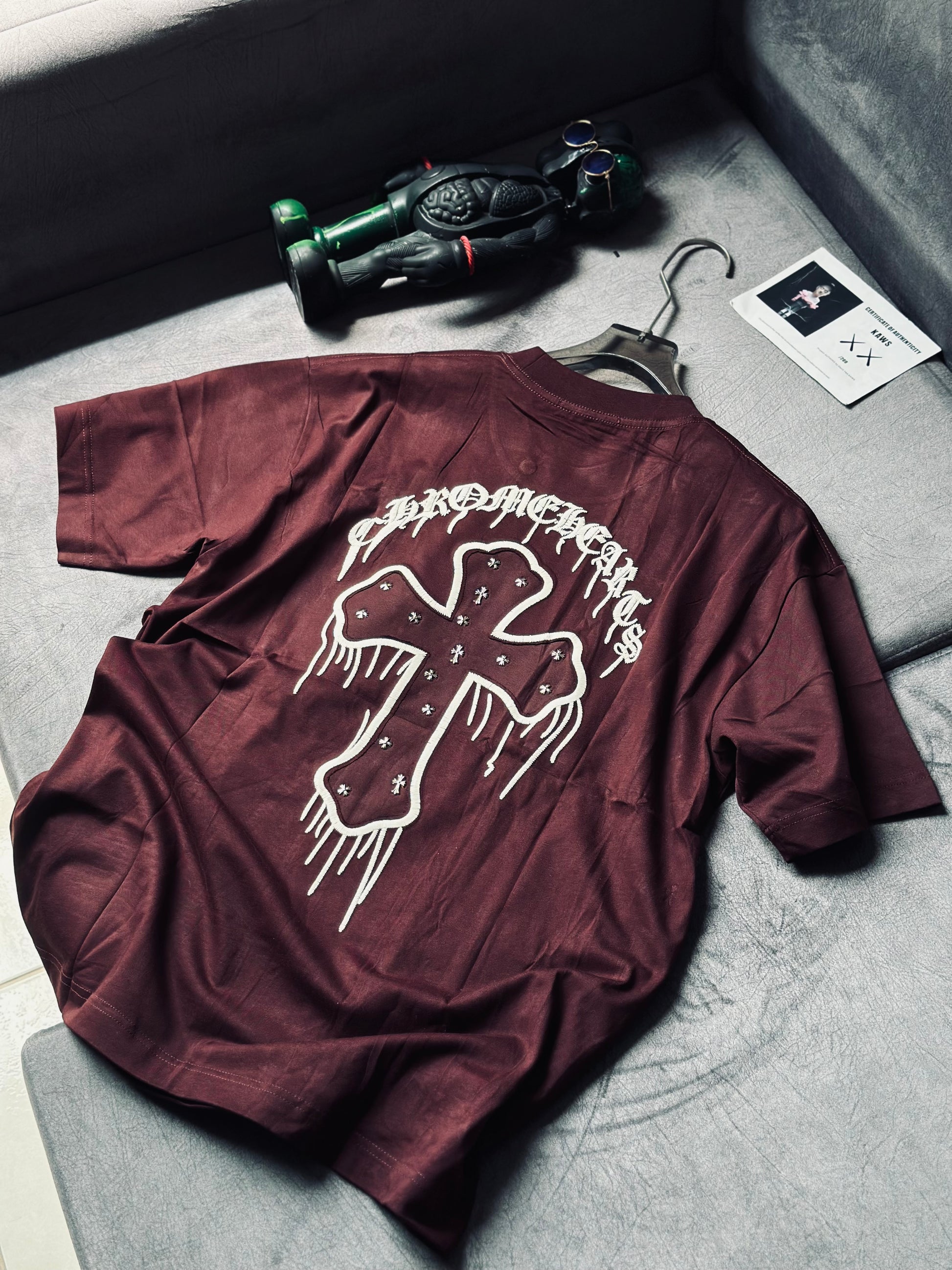 CAMISETA OVERSIZE CHR VINOTINTO CRUZ CREMA